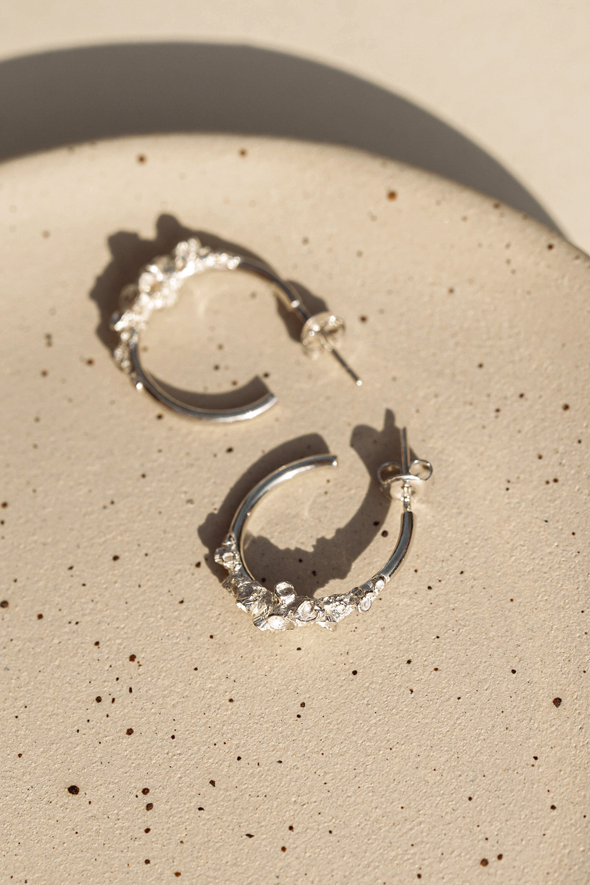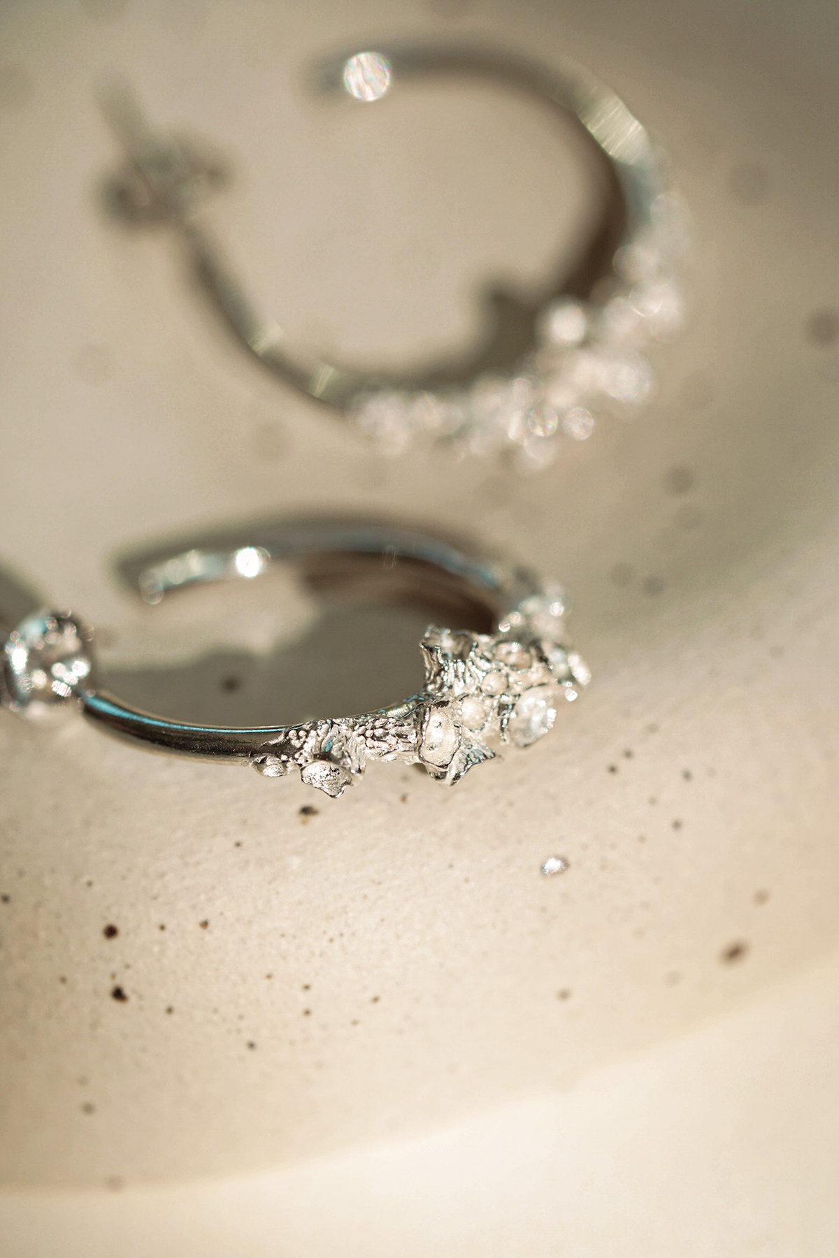 A Coralized kollekció fülbevalói, korall szirtek burjánzó mintázatát megjelenítő ezüst ékszerek.