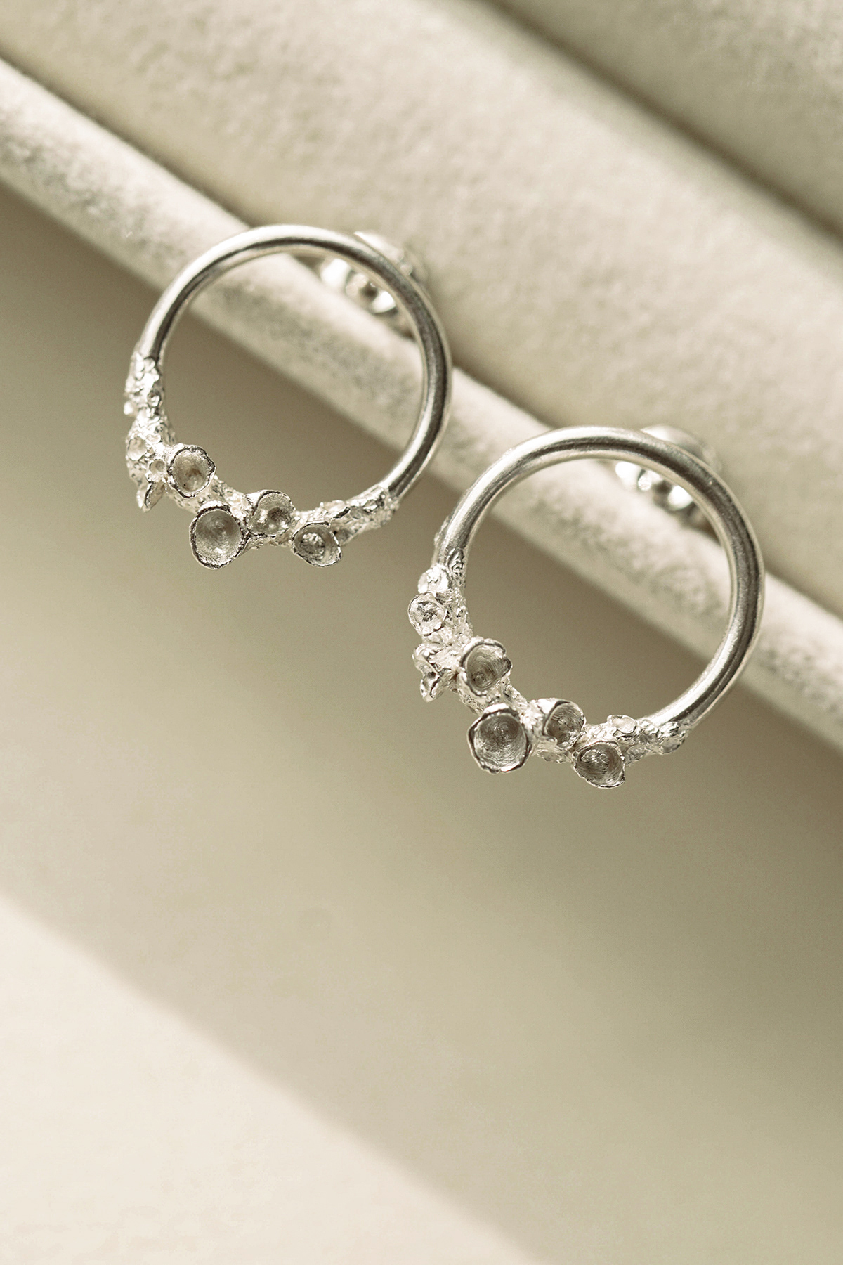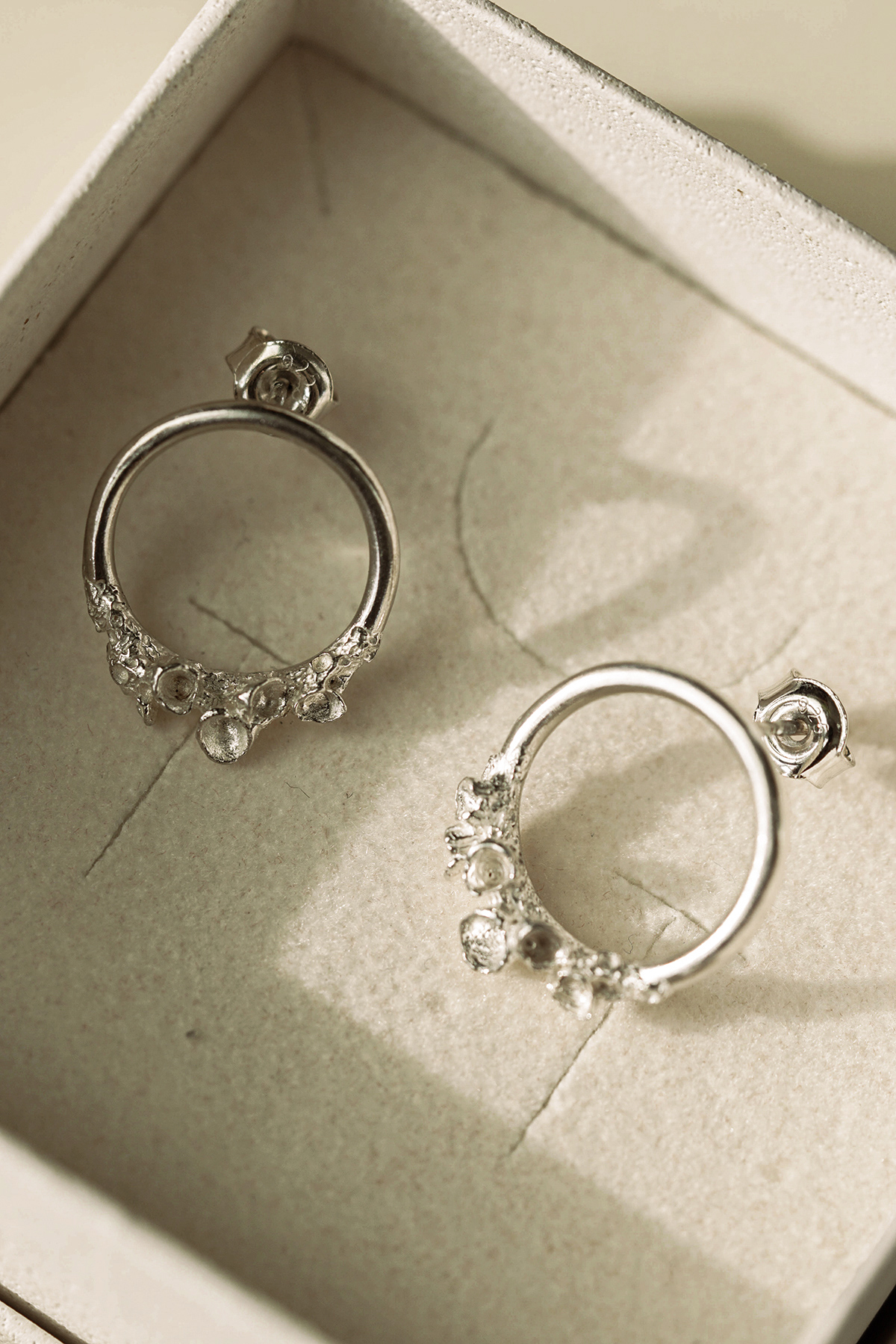 A Coralized kollekció fülbevalói, korall szirtek burjánzó mintázatát megjelenítő ezüst ékszerek.